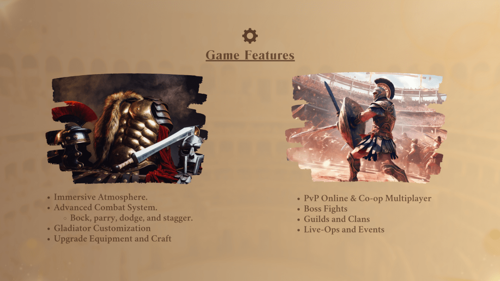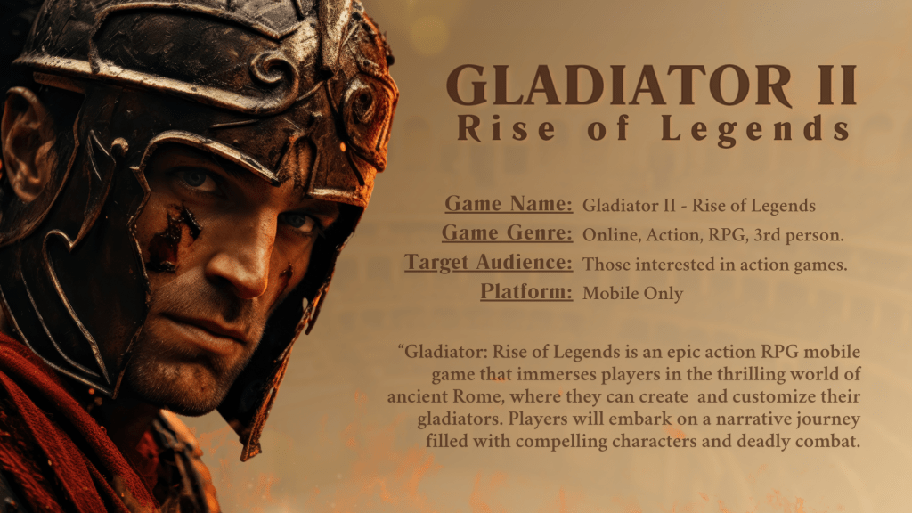 The ‘Gladiator II – Rise of Legends’ pitch was created for Dead Mage, and is another example of a pitch deck I have assisted creating.